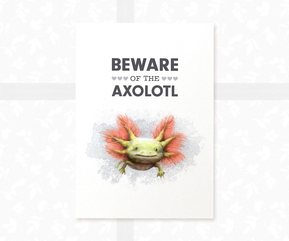 This awesome art print features a stunning axolotl beneath the quote "Beware of the axolotl", the perfect print for finishing off your reptile room. It makes an ideal Lizard themed gift for reptile lovers - whether it's a birthday gift, an anniversary gift, a housewarming present or just a stunning feature for your own home.