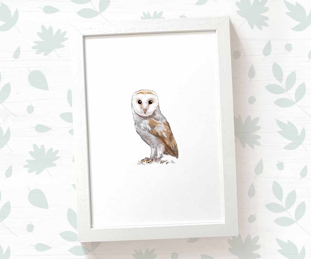 Add the perfect finishing touch to your woodland-themed nursery with this stunning barn owl print. It makes an ideal forest themed gift for a new mum or dad or their little one - whether it's a first birthday gift, a baby shower gift, a woodland bird nursery print to finish off your baby's room or a playful feature for your home.