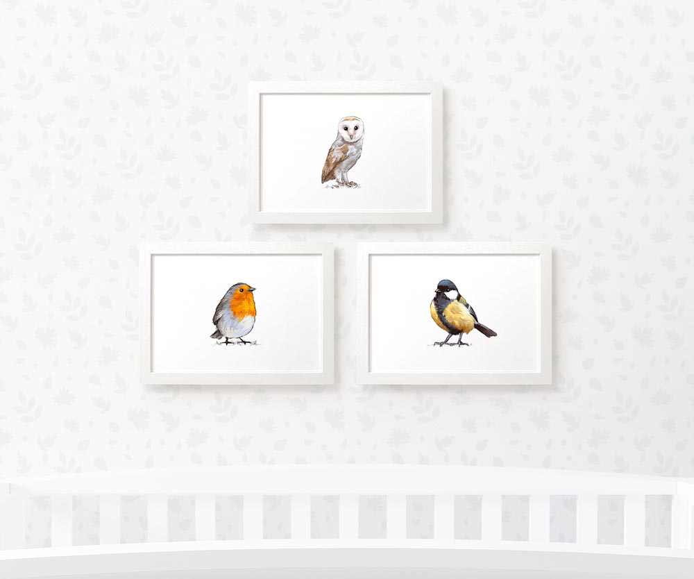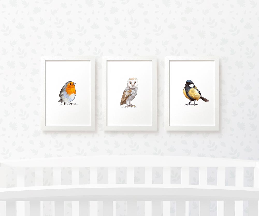 This gorgeous bird nursery set of 3 prints is the perfect gift for expecting parents or to welcome a new baby. Your set of prints will include a robin, barn owl, and great tit. Ideal as a first birthday gift or gender-neutral baby shower gift, these prints will complete your bird-themed baby room.