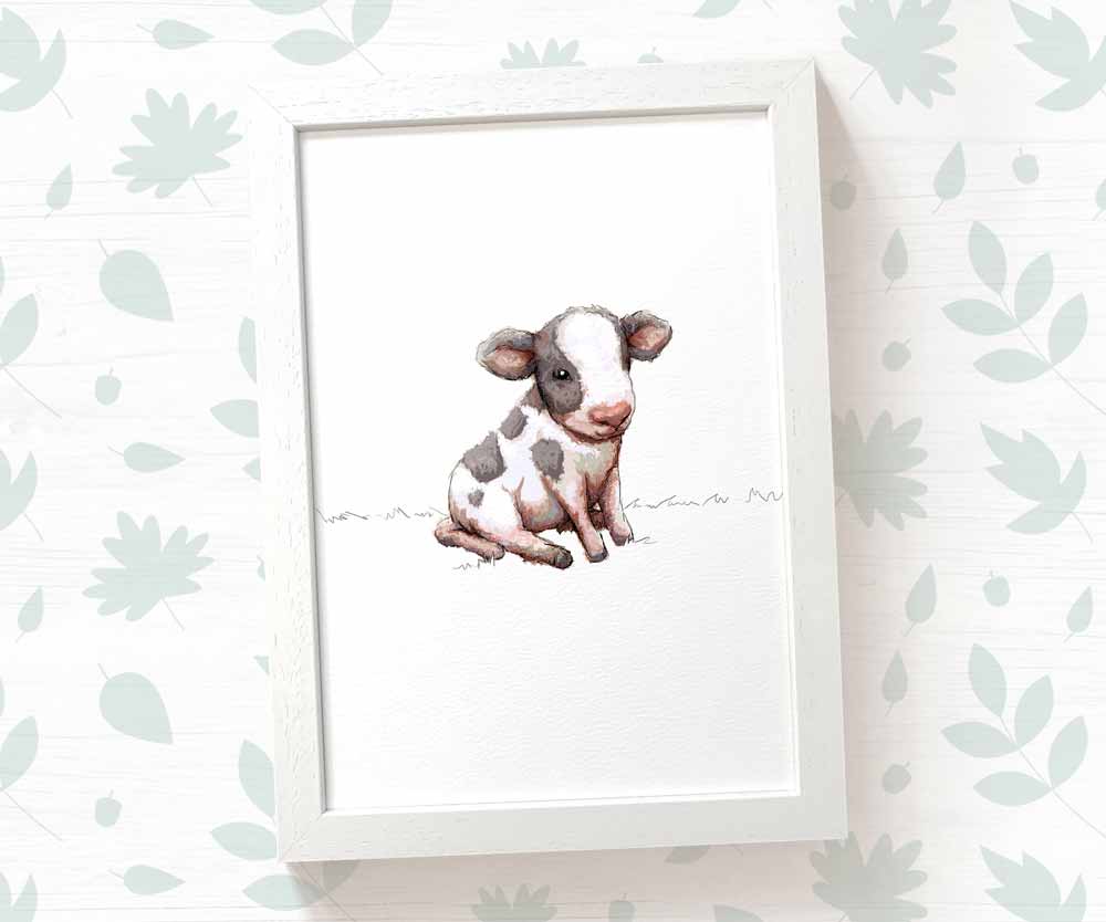 Add the perfect finishing touch to your farm animal themed nursery with this stunning cow print. Ideal as a baby shower gift for new parents or to complete a farm-themed playroom, this nursery print makes a memorable first birthday gift and adds a beautiful touch to any collage wall.