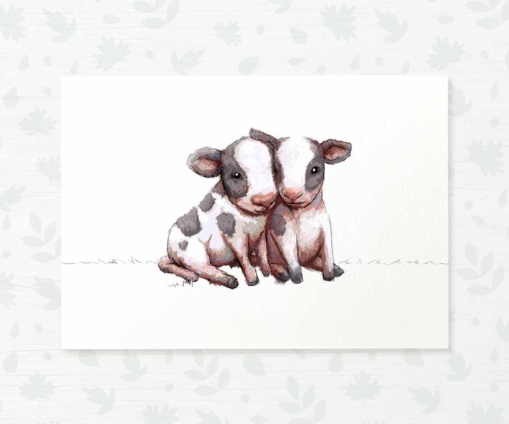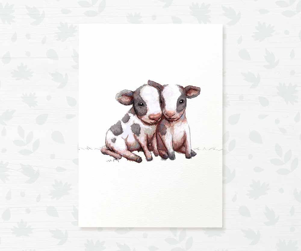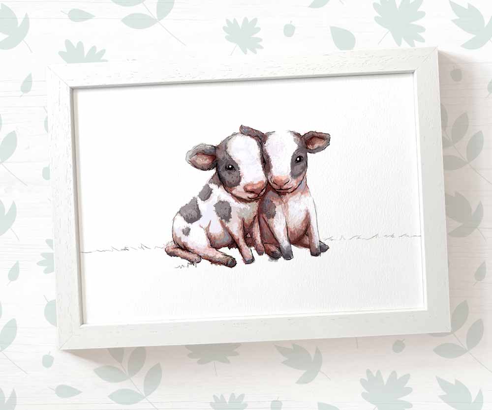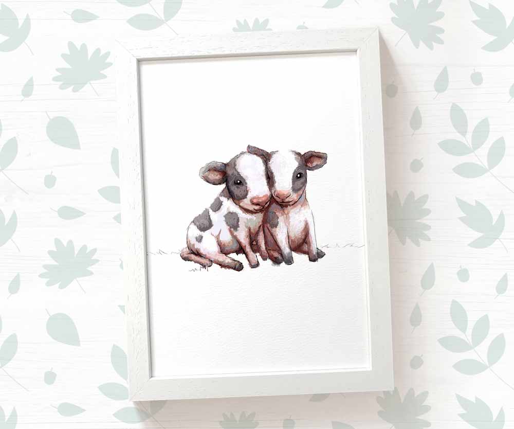 Add the perfect finishing touch to your farm animal-themed twin nursery with this stunning cow print. Ideal as a farm-themed gift for new parents or their little ones, it works beautifully as a first birthday gift, a twin baby shower gift, a nursery print to complete your baby's room, or a playful feature for your home.