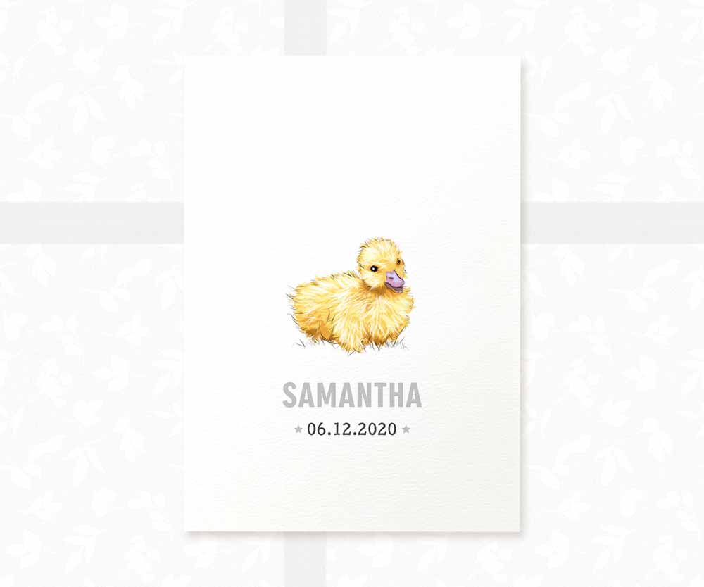 Personalise your duck baby birth print with your baby's name and date of birth for a perfect nursery feature. Whether for a baby shower, a memorable first birthday or a homecoming gift, this adorable print will complete your bird-themed nursery decor as a lasting celebration of your little one.