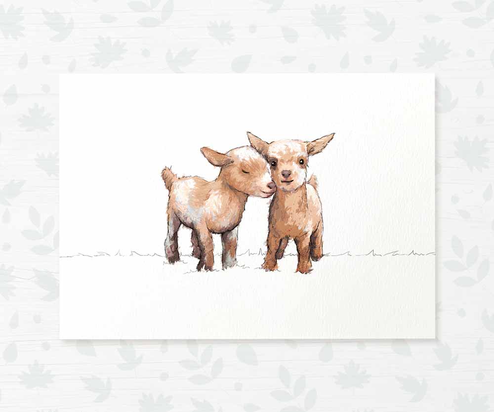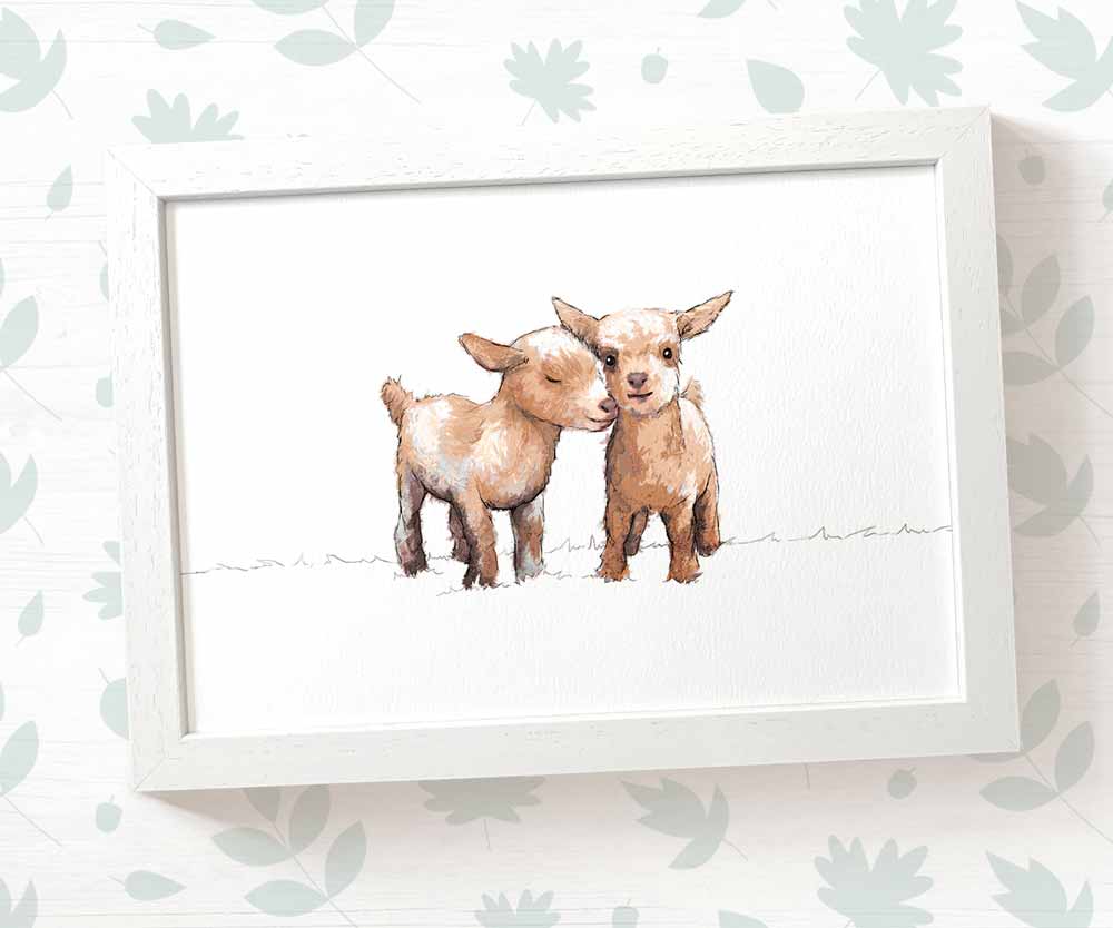 Add the perfect finishing touch to your farm animal-themed twin nursery with this stunning goat print. Ideal as a farm-themed gift for new parents or their little ones, it works beautifully as a first birthday gift, a twin baby shower gift, a nursery print to complete your baby's room, or a playful feature for your home.