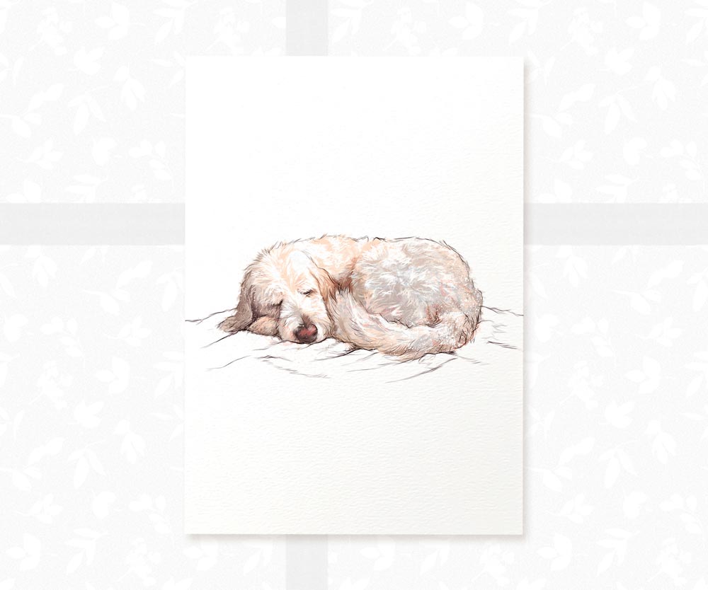Add the perfect finishing touch to your dog themed nursery with this sleeping Goldendoodle print. It makes an ideal dog themed gift for a new mum or dad or their little one - whether it's a first birthday gift, a baby shower gift, a dog themed nursery print to finish off your baby's room or a playful feature for your home.