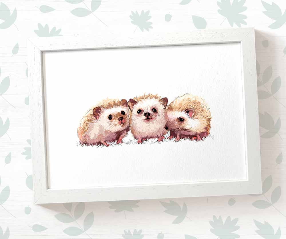 Hedgehogs Woodland Animal Nursery Print for Triplets