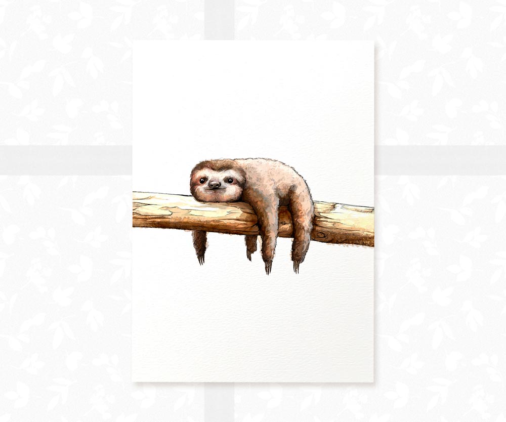 This adorable print features a cute sloth hanging out on it's favourite branch, the perfect finishing touch to any sloth or jungle themed children's room or nursery. It makes an ideal sloth themed gift for a new mum or dad or their little one - whether it's a first birthday gift, a baby shower gift, a zoo animal nursery print to finish off your baby's room or a playful feature for your home.