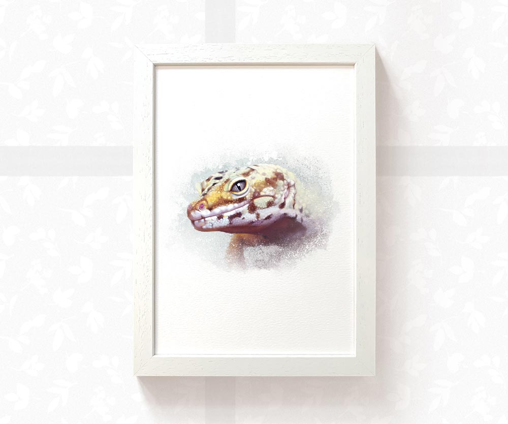 This awesome art print features a stunning Leopard Gecko, an ideal print for finishing off your reptile room. It makes the perfect Lizard themed gift for reptile lovers - whether it's a birthday gift, an anniversary gift, a housewarming present or just a stunning feature for your own home.