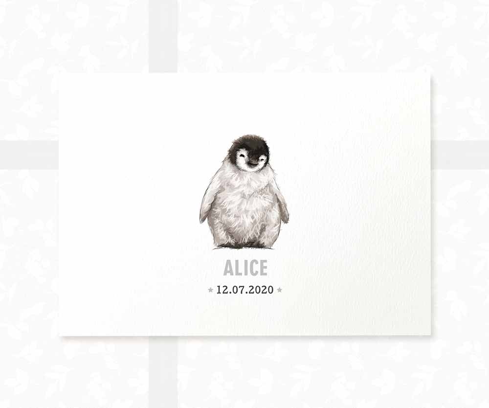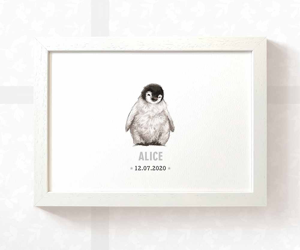 Personalise your penguin baby birth print with your baby's name and date of birth for a perfect nursery feature. Whether for a baby shower, a memorable first birthday or a homecoming gift, this adorable print will complete your animal-themed nursery decor as a lasting celebration of your little one.