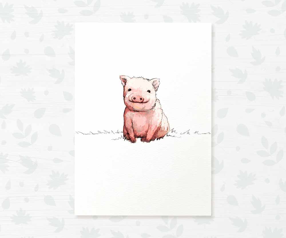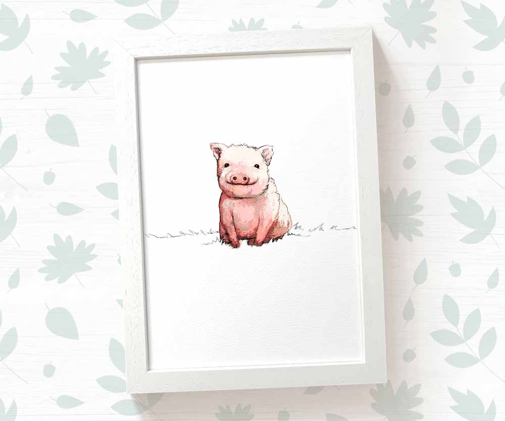 Add the perfect finishing touch to your farm animal themed nursery with this stunning pig print. Ideal as a baby shower gift for new parents or to complete a farm-themed playroom, this nursery print makes a memorable first birthday gift and adds a beautiful touch to any collage wall.