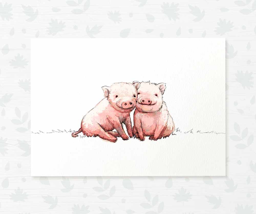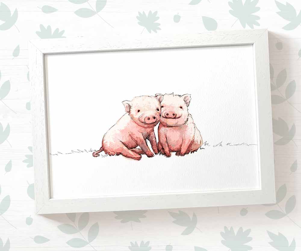 Add the perfect finishing touch to your farm animal-themed twin nursery with this stunning pig print. Ideal as a farm-themed gift for new parents or their little ones, it works beautifully as a first birthday gift, a twin baby shower gift, a nursery print to complete your baby's room, or a playful feature for your home.