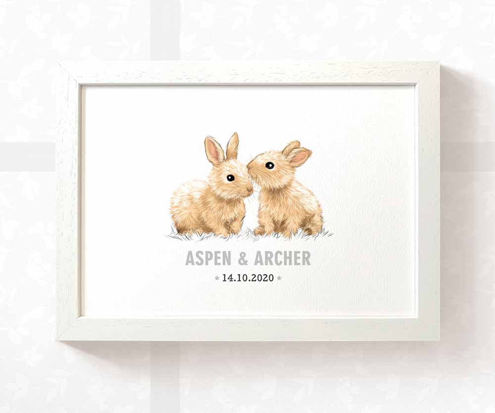 Rabbit Personalised Baby Name Print for Twins