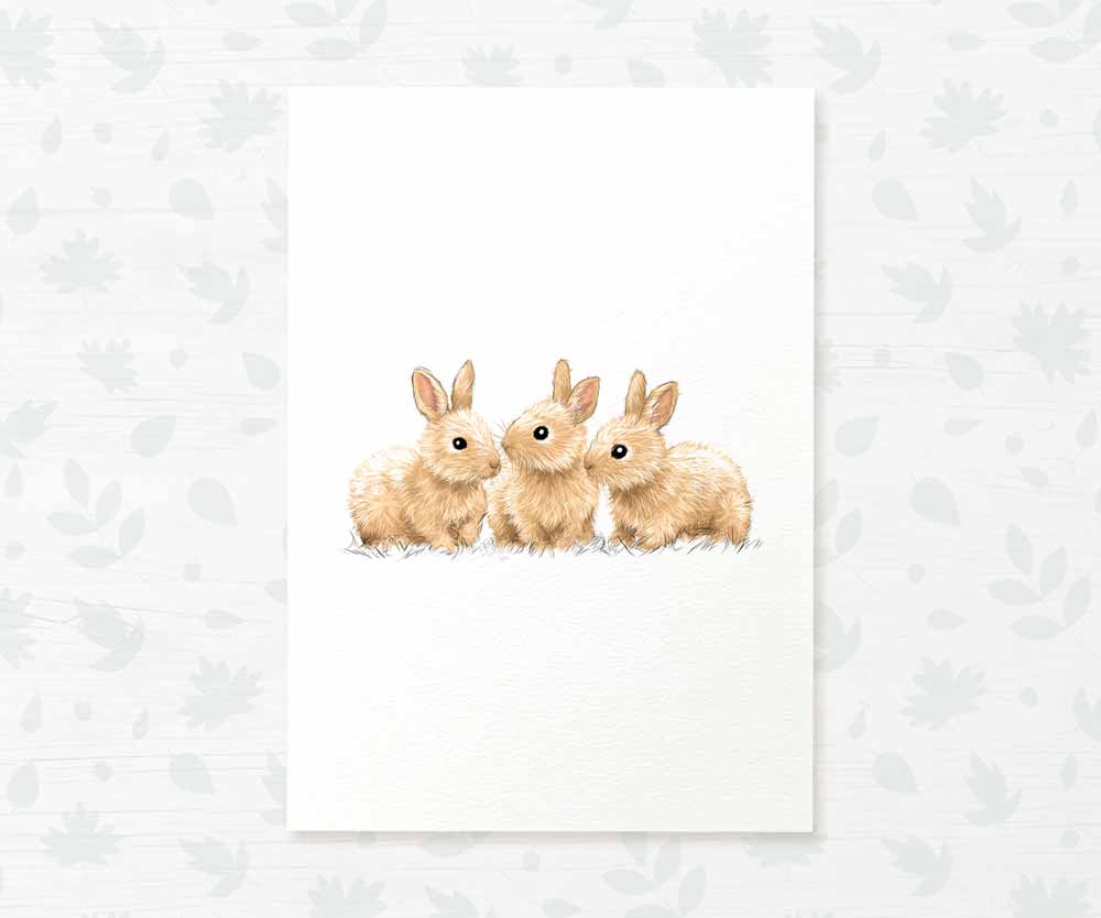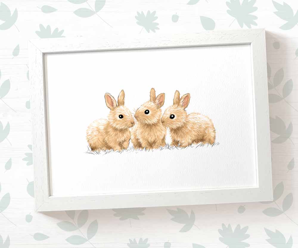 This woodland art print featuring triplet baby rabbits is the perfect way to complete your little ones' nursery. Ideal as a baby shower gift for new parents or to complete a woodland-themed playroom, this lion print makes a memorable first birthday gift and adds a beautiful touch to any collage wall.