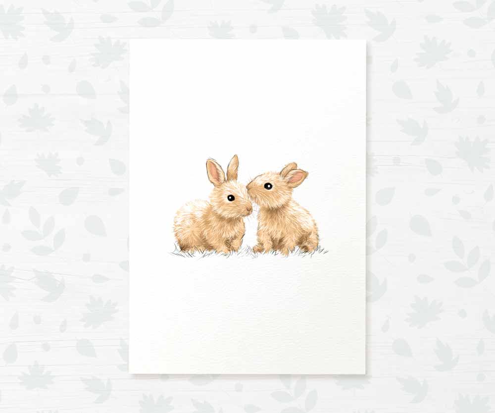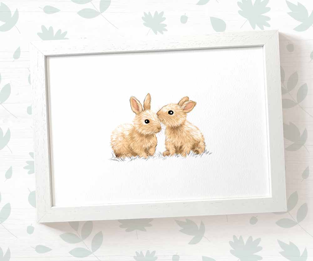 Add the perfect finishing touch to your woodland-themed twin nursery with this stunning bunny rabbit print. Ideal as a forest-themed gift for new parents or their little ones, it works beautifully as a first birthday gift, a twin baby shower gift, a nursery print to complete your baby's room, or a playful feature for your home.