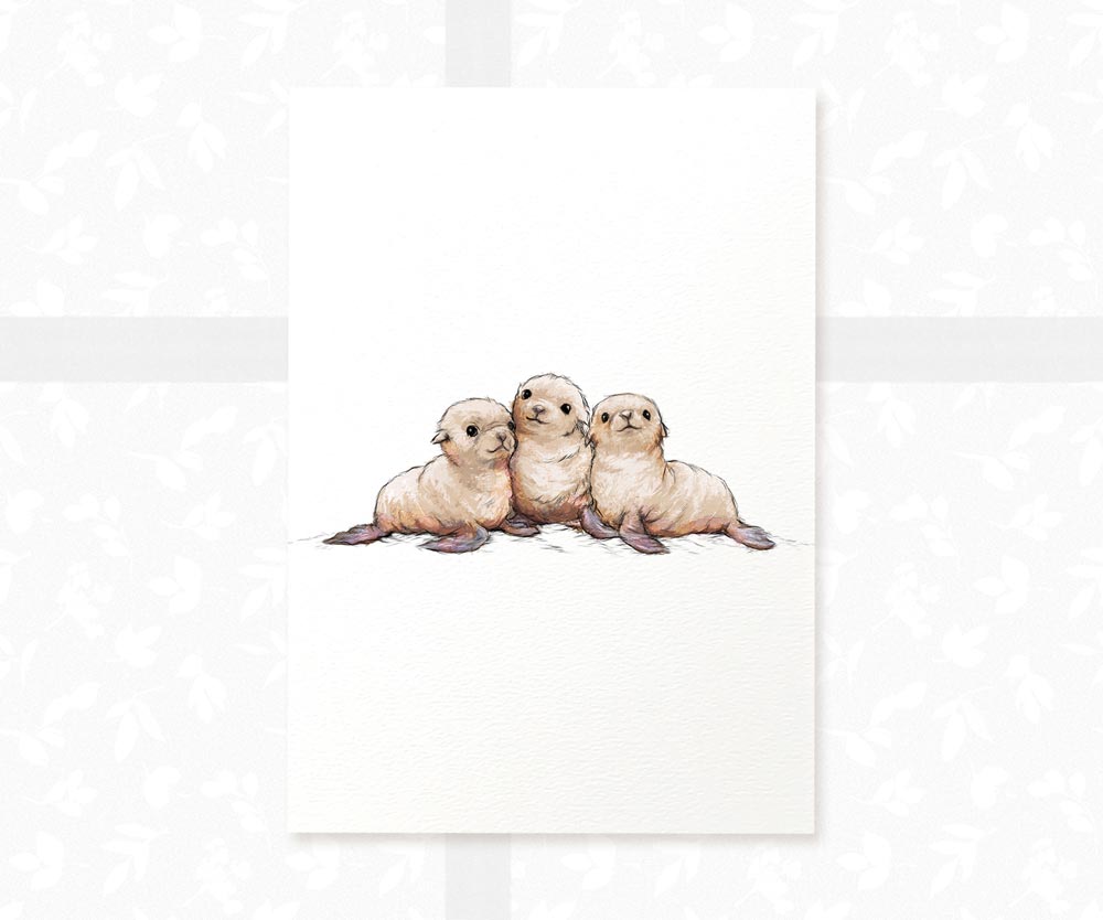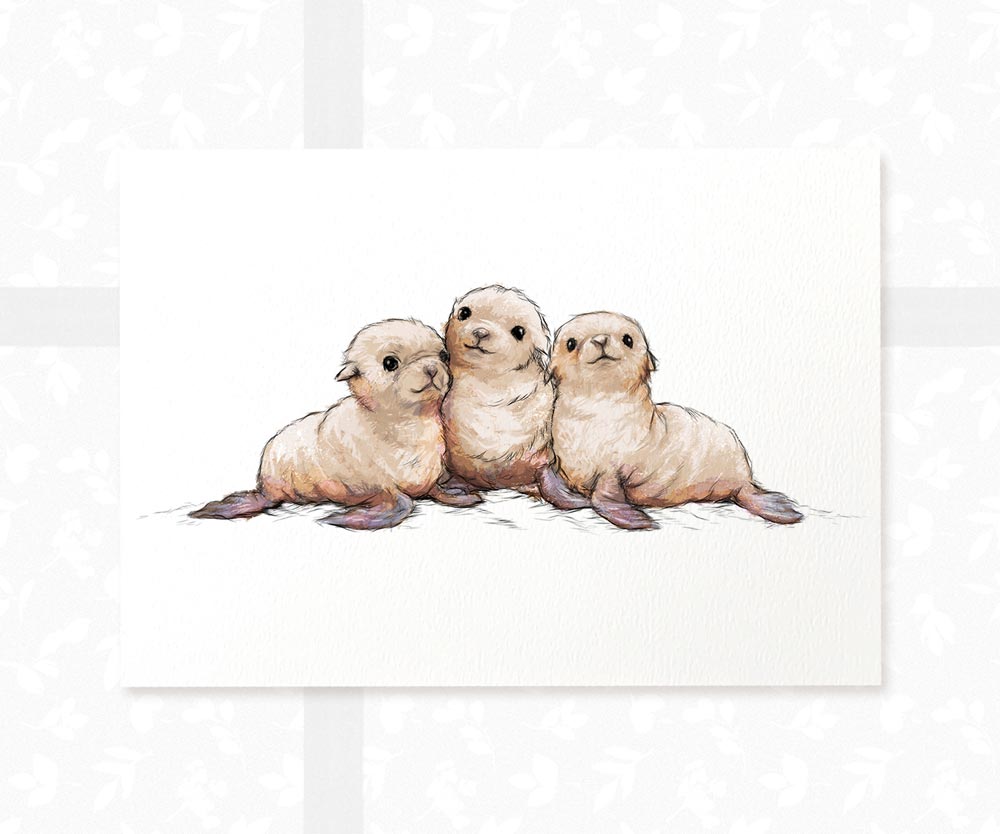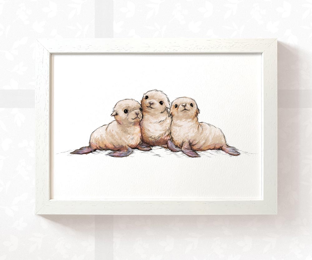This animal art print featuring triplet baby seals is the perfect way to complete your little ones' nursery. Ideal as a baby shower gift for new parents or to complete an animal-themed playroom, this lion print makes a memorable first birthday gift and adds a beautiful touch to any collage wall.