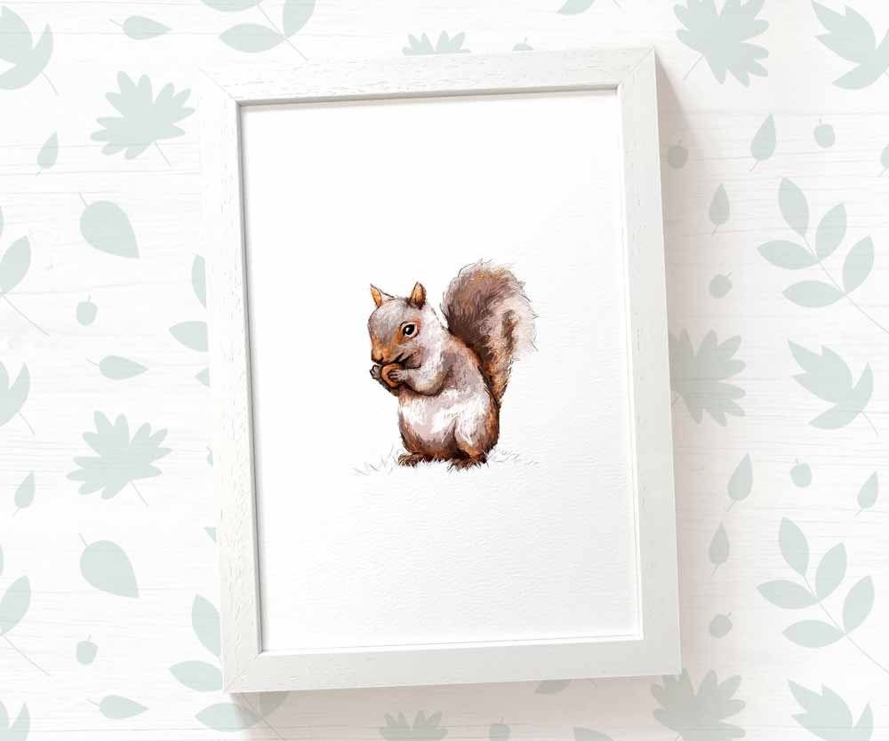 Add the perfect finishing touch to your woodland-themed nursery with this stunning squirrel print. It makes an ideal forest-themed gift for new parents or their little one, whether it's a first birthday gift, a baby shower gift, a nursery print to complete your baby's room, or a playful feature for your home.