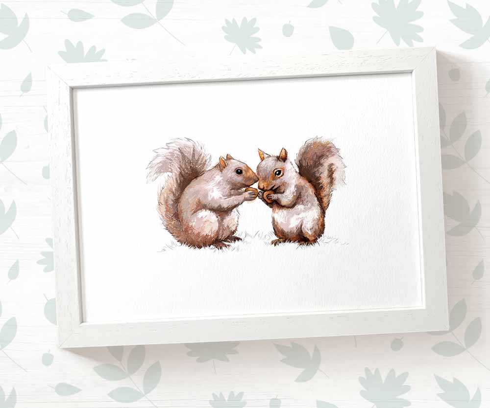 Add the perfect finishing touch to your woodland-themed twin nursery with this stunning squirrel print. Ideal as a forest-themed gift for new parents or their little ones, it works beautifully as a first birthday gift, a twin baby shower gift, a nursery print to complete your baby's room, or a playful feature for your home.