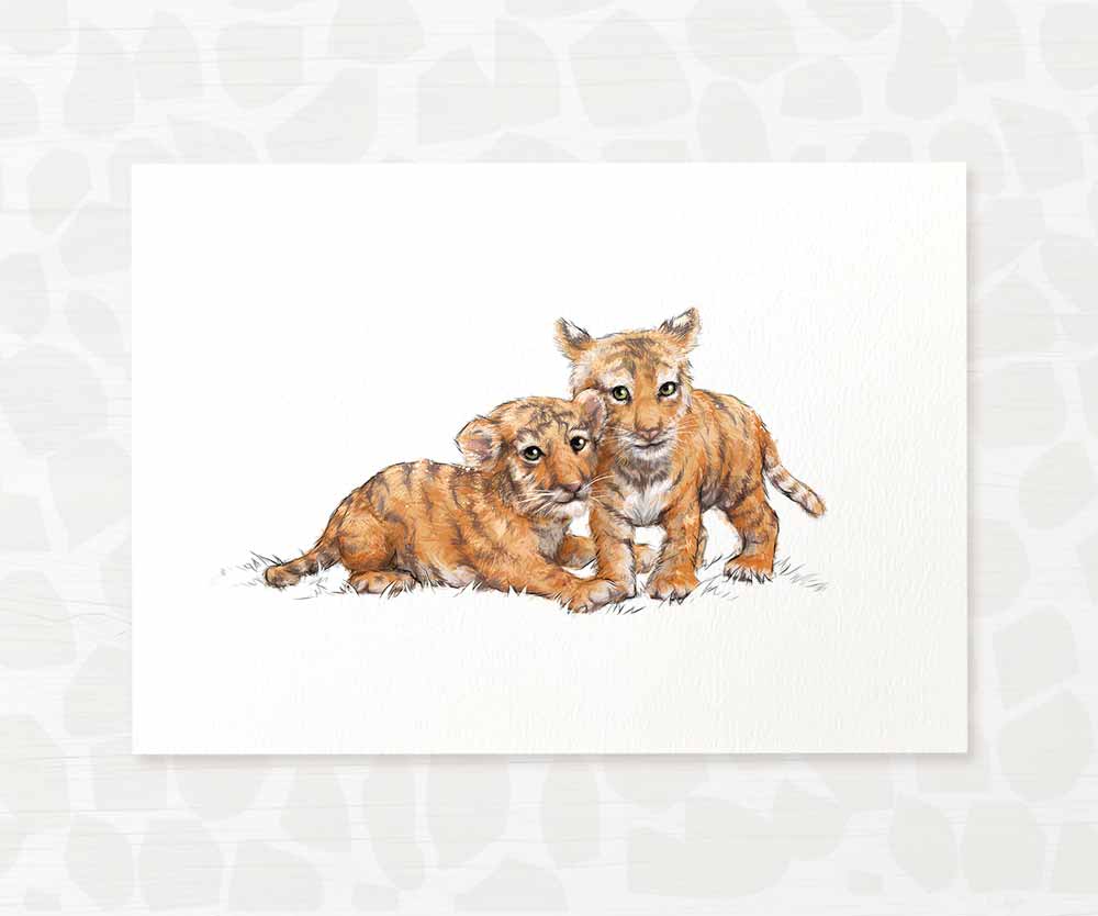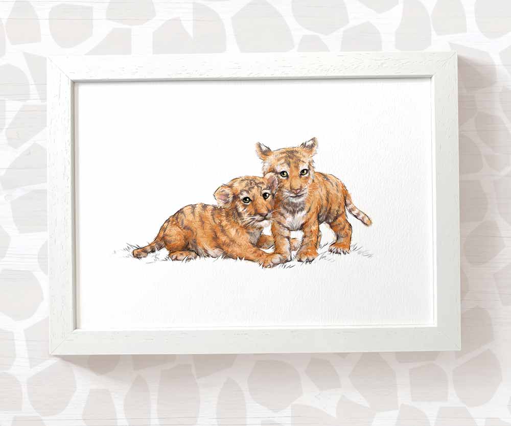This safari animal wall art print featuring twin baby tigers makes the perfect addition to your little ones' safari nursery decor, whether you're looking for twin safari baby shower gift ideas to welcome newborns into the world or a present for new mums and dads to complete their twinnies safari themed playroom decor.