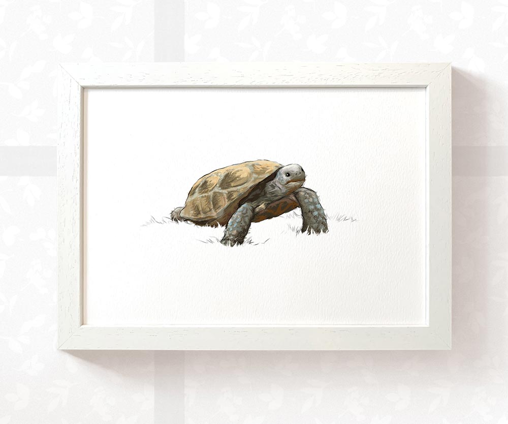 Add the perfect finishing touch to your reptile themed nursery with this stunning tortoise print. It makes an ideal animal themed gift for a new mum or dad or their little one - whether it's a first birthday gift, a baby shower gift, a zoo animal nursery print to finish off your baby's room or a playful feature for your home.