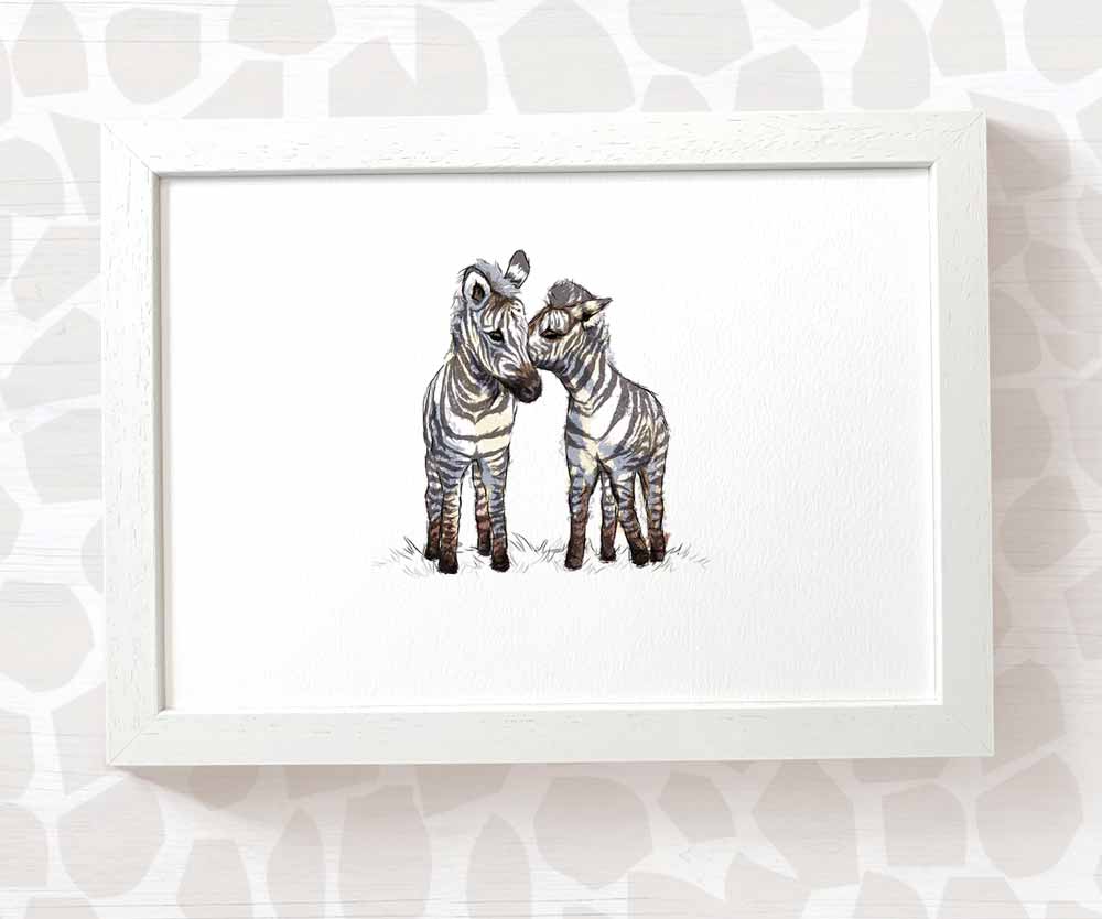 This safari animal wall art print featuring twin baby zebras makes the perfect addition to your little ones' safari nursery decor, whether you're looking for twin safari baby shower gift ideas to welcome newborns into the world or a present for new mums and dads to complete their twinnies safari themed playroom decor.